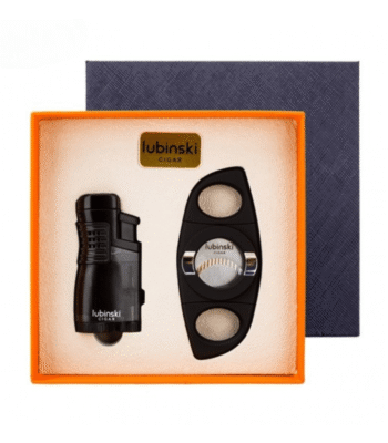 LUBINSKI Cigar Cutter and Torch Lighter 3 Jet Cigar Lighter w Punch, Security Lock Cigar Cutter W Cigar Stand Gift Set (Black)
