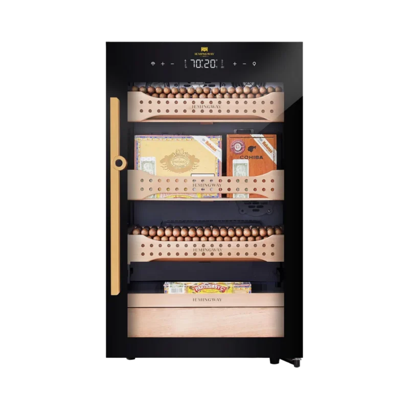 Hemingway Electric Cigar Humidor , Dual‑Zone Smart Humidifier with Touchscreen & Digital Hygrometer, Wi‑Fi App Control, UV‑Protected Glass, Spanish Cedar WOOD, Holds Up to 400 Cigars – (JC50A2-B1)