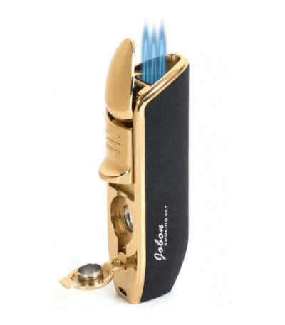 Jobon Cigar Lighter Triple Jet Flame Torch Lighter with Cigar Puncher – Black