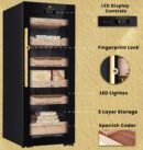 Hemingway B4 Electric Cigar Humidor,1200 Cigars capacity, Spanish Cedar Wood, Touchscreen, Fingerprint Lock, Double tempard Glass Door, Dual zone Temperature & Humidity Control