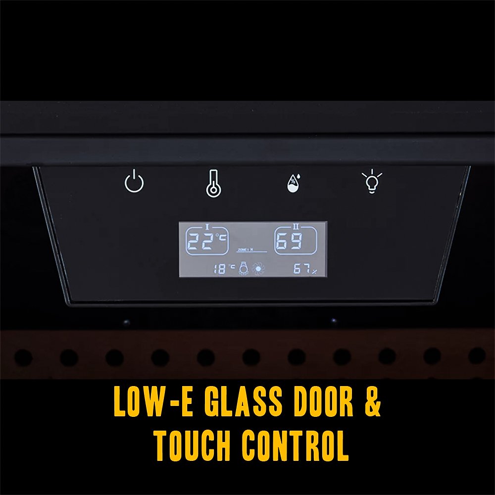 - PRECISE CLIMATE CONTROL: Digital touch screen panel maintains temperature between 16-22°C and humidity between 65-75% for perfect cigar storage.