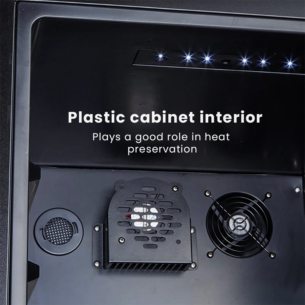 - Elegant Display: Double tempered glass door and LED lighting (top and sides).