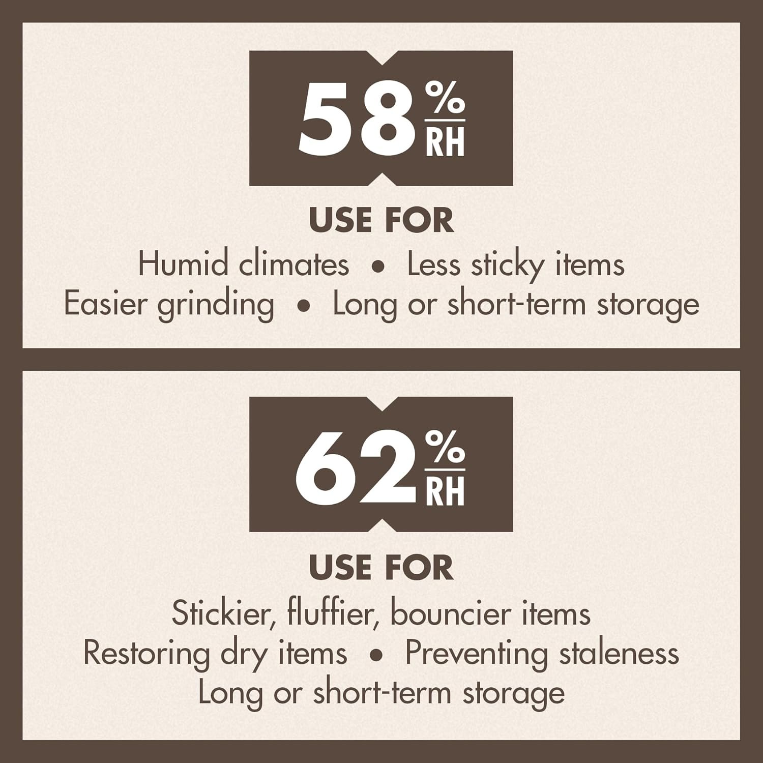 - HOW BOVEDA WORKS: Boveda 62% RH keeps items fresh by stabilizing the humidity inside your airtight container. If the air inside your container is too moist, Boveda absorbs that moisture. If it’s too dry, Boveda releases moisture into your container to bring what’s inside back to life. ADD A BOVEDA PACK RIGHT AWAY TO EVERY BAG OF NEW ITEMS TO KEEP THEM FROM GOING STALE. You can also use Boveda 62 to restore overly dry items to their original vibrant state—the way nature intended.