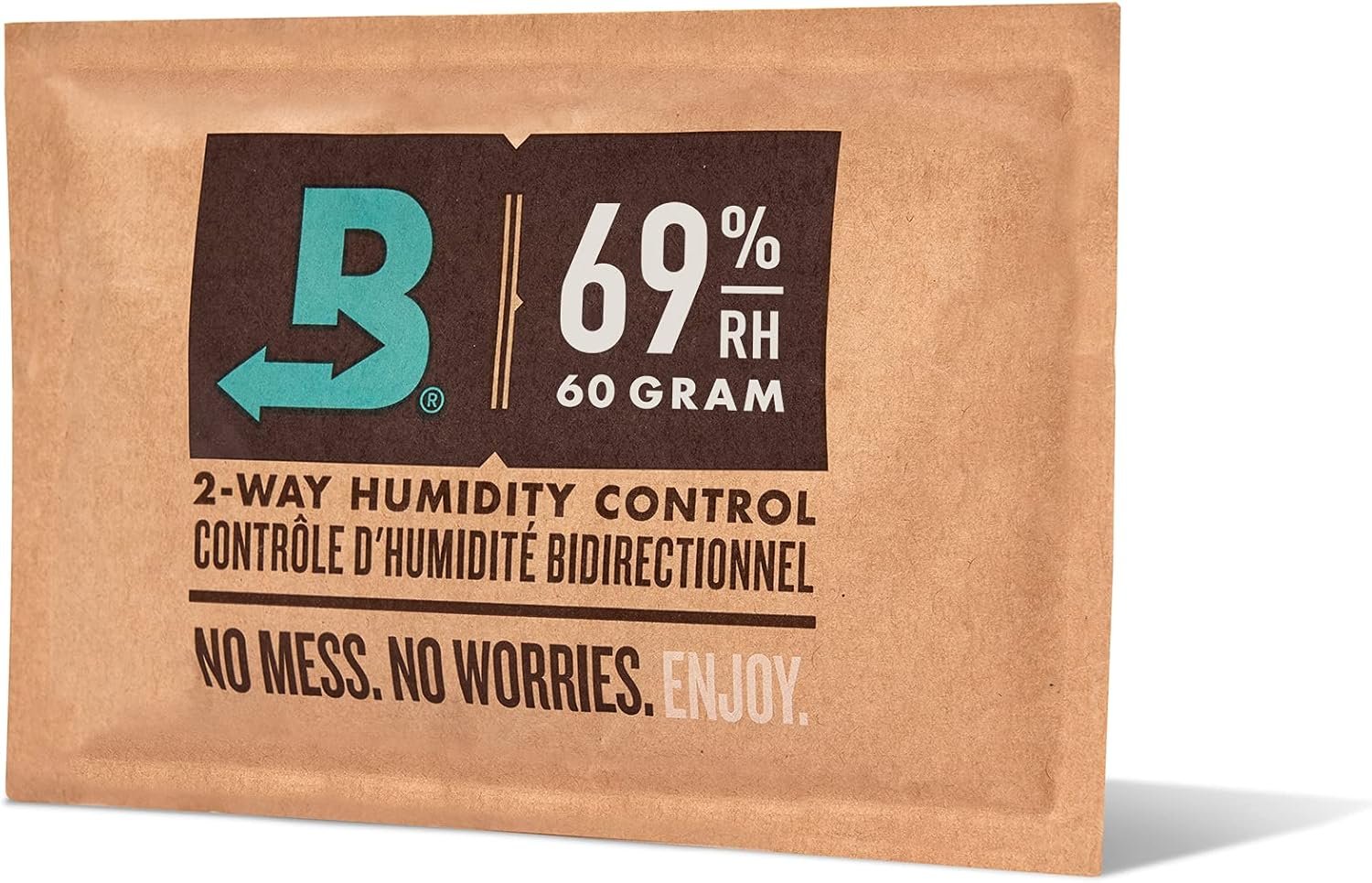 - WHY THIS BOVEDA: 69% RH is the sweet spot for storing premiums in plastic food storage containers & airtight wooden containers. Use one 5.25″x3.5″ humidifier packet for every 25 TOTAL items your humidifier box can hold. NATURAL INGREDIENTS. Trusted by over 3 million people to protect & maintain items at the perfect humidity level. WE GUARANTEE QUALITY! If you’re not 100% satisfied, reach out for a full refund for up to 1 year.