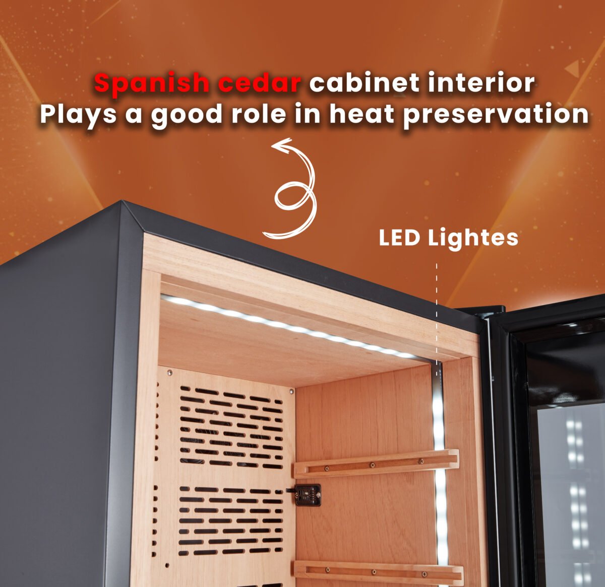 Crafted from high-quality Spanish cedar, the interior of the Hemingway Electric Humidor 2000Ct cigar humidor is not only aesthetically pleasing but also imparts a distinct aroma that enhances the flavor profile of your cigars. Spanish cedar is renowned for its moisture-absorbing properties, helping to maintain the ideal humidity level within the humidor.