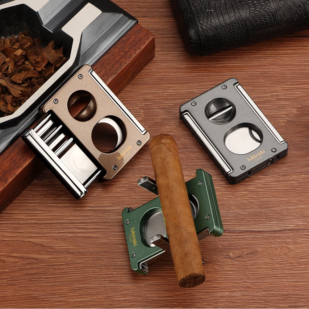 Upgrade your cigar experience with the Lubinski Luxury V-Cut Cigar Cutter, designed for precision, durability, and elegance. Crafted from high-quality metal with a refined green finish, this sharp guillotine cutter delivers a clean, deep V-cut that enhances airflow and flavor with every draw.