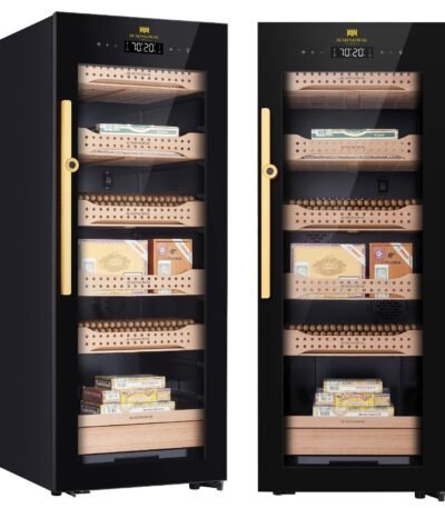 Hemingway B4 Electric Cigar Humidor,1200 Cigars capacity, Spanish Cedar Wood, Touchscreen, Fingerprint Lock, Double tempard Glass Door, Dual zone Temperature & Humidity Control