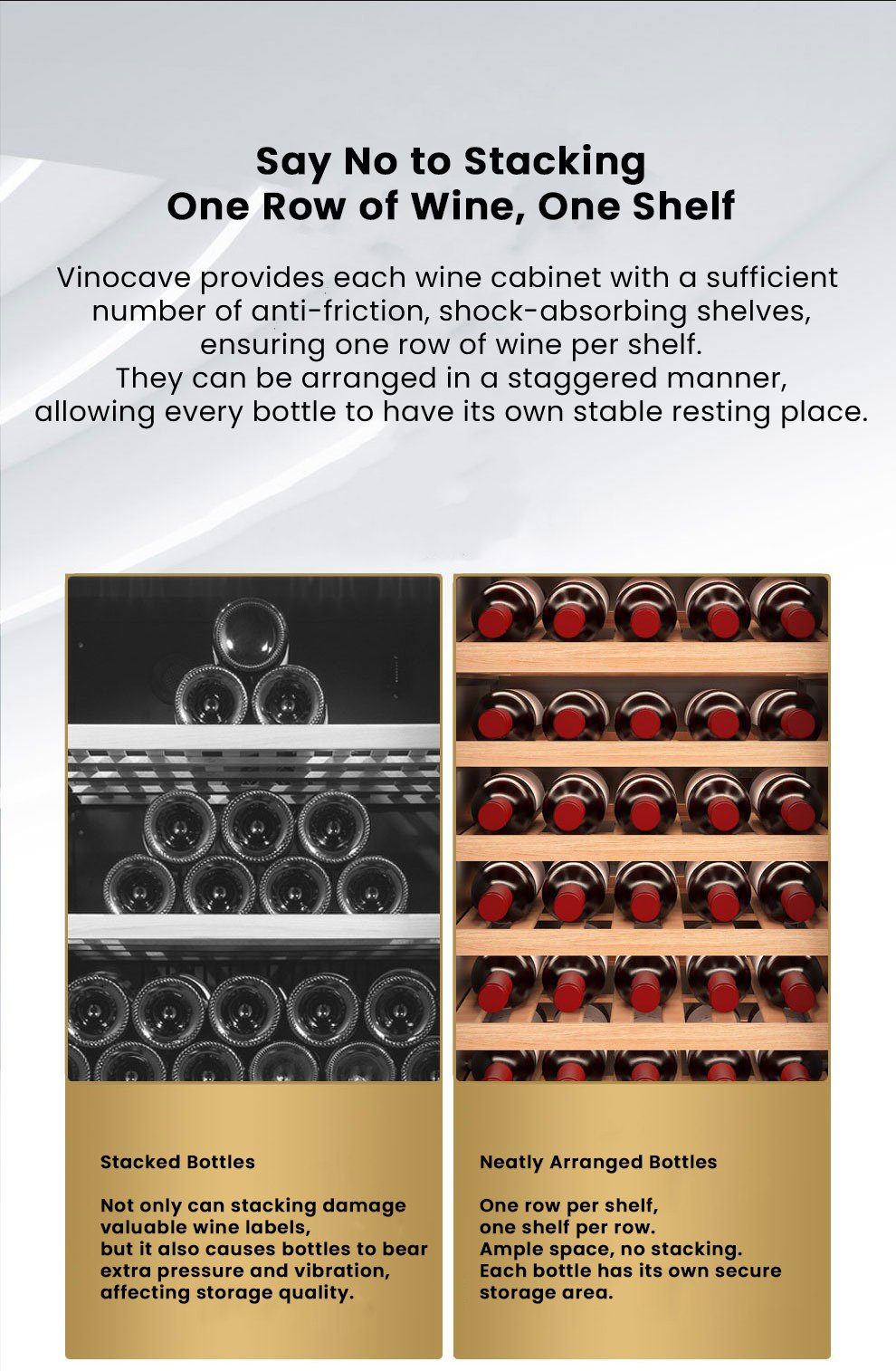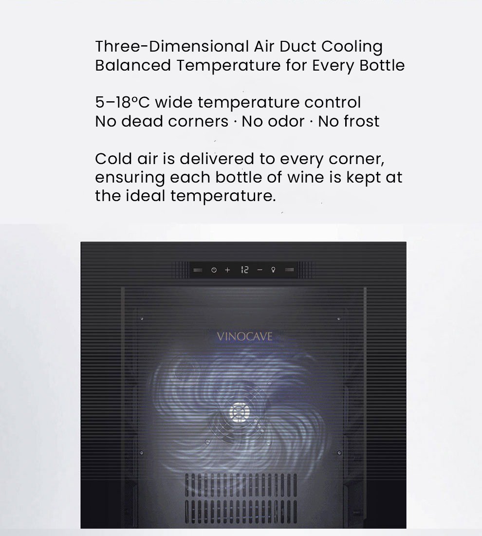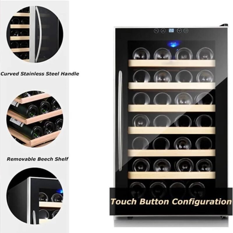 Touch Control Low Vibration Low Noise : Specially built with an Energy-efficient thermoelectric cooling system with no compressor, to minimize the vibration effect and noise, allowing your wine to age and settle properly, with no disturbance to its natural occurring sediments.